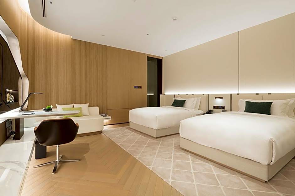 An adults-only rooftop outdoor pool offers a chic perch, open year-round and ideal for sunset moments. The on-site restaurant 鹭 ICON KITCHEN serves Italian, pizza, steakhouse, Asian, and international cuisines, with vibes ranging from family-friendly to modern and romantic.